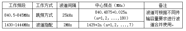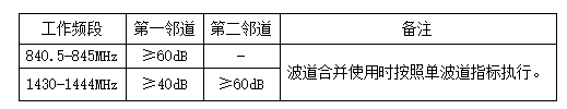 注意:該要求規(guī)定了產(chǎn)品如果使用840.5-845MHz頻段就必須使用跳頻技術(shù),單個(gè)信道帶寬是25KHz,廠商可以根基實(shí)際使用的情況進(jìn)行信道合并來(lái)提高數(shù)據(jù)傳輸速度,但在做認(rèn)證時(shí)需要給國(guó)家無(wú)委一個(gè)關(guān)于信道合并使用的合理的解釋說明。此外,信道的中心頻率載頻容限不得超過20ppm,并且需要樣機(jī)在機(jī)發(fā)射載波信號(hào)的狀態(tài)下進(jìn)行測(cè)試。